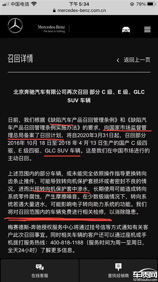 北京奔驰GLC电子转向失灵要求保修2021-10-21车型:2017款 260 4MATIC 动感型