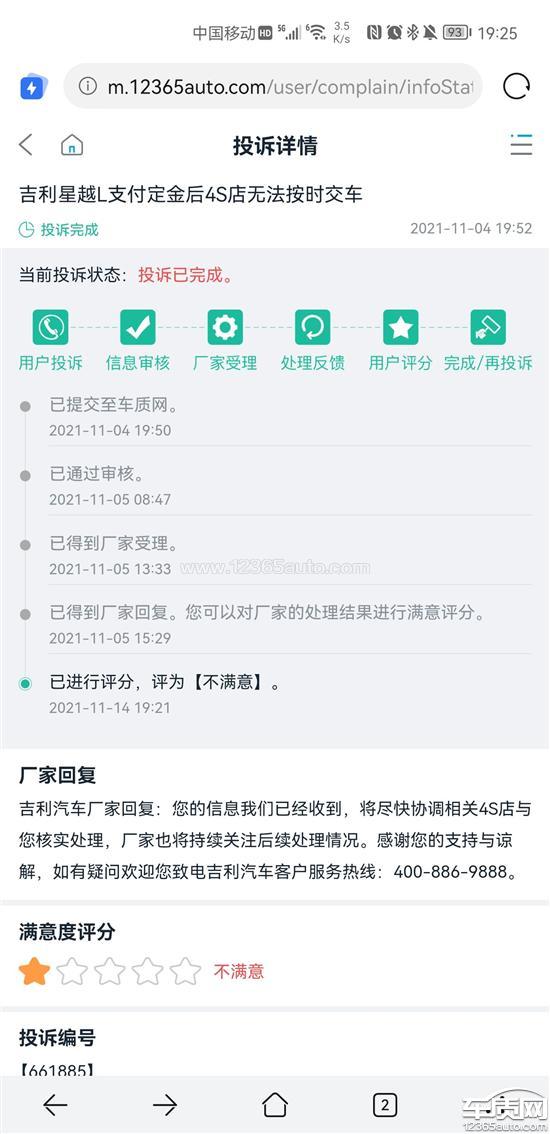 吉利星越L支付定金后4S店无法按时交车,继续投诉,根本没有得到解决!根本没有任何解决方案,吉利复读机开始工作了,复制黏贴好用不。