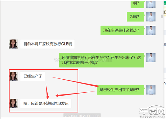 本人于2021年8月31日在深圳4S店签订购车合同订购一辆奔驰GLB200时尚版白色的车辆,约定9月底至10月底之间去店里提车。9月14日问销售要到了车架号(LE44M8HB0MN04***83),销售说已锁定车辆很快就可以厂家运,并微信确认说10月底前提车。然后后面该被锁定车辆被5次排期生产(分别时9.2810.1410.2110.2811.4),压根就没有真正生产,期间我主动问询销售车辆情况,其欺骗我一次(9月28日)跟我说车辆生产中,一次(10月8日)说车辆已生产处理等待厂家发运,其实都没有生产是我。我同事9月初在不同的4S店订购的一模一样的车于11月初已提车了,而我锁定的车无限次的推迟生产中,销售说缺芯片,其实北京厂说已正常恢复了,再说之前选颜色时说黑色看不到资源会可能明天才提车,但11月11日4S店销口的店里刚到一辆黑色车没人要问我要不要,这不缺芯片就是不攻自破了,更加让人不理解的是,我合同上写的车辆标的是期货,但销售发给我的截图记载中标的是现货,推测4S店给我锁定的是之前的库存车辆返厂,现在搞得提车根本就不知啥时候。