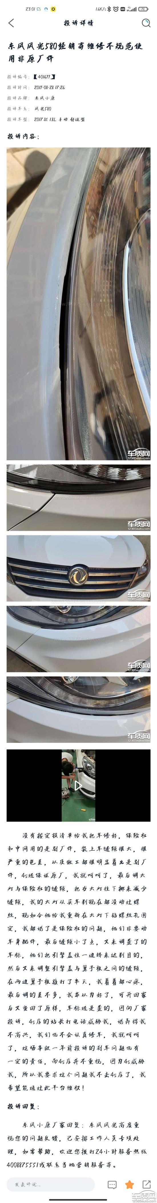 投诉编号:【666121】 投诉时间:2021-11-16 13:39 投诉品牌:东风小康 投诉车系:风光580 投诉车型:2017款 1.8L 手动 舒适型
