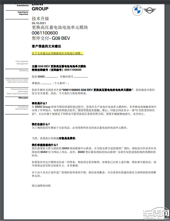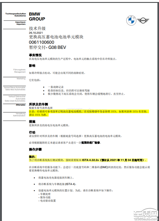 在车友群了解宝马iX3动力电池故障存在质量缺陷,咨询经销商确实存在该问题,电池严重存在安全隐患,召回无解释无赔偿,要求厂家尽快解决。