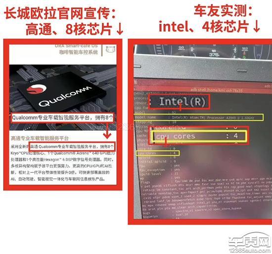 因为虚假信息宣传机车芯片为高通八核,实际被车友测出是英特尔老款处理器,后期被车主指出证据,竟然删除官网原本给出的汽车配置图,还混淆视听说高通只是通讯系统,实际处理器是英特尔,但愿本宣传单表示清清楚楚汽车交互处理系统芯片是高通啊,因为实际使用产品于宣传有出入,导致车机系统不好,不智能化。也因为芯片问题,会导致驾驶辅助系统反应不灵,还有日常导航也会有很大问题,语音唤醒经常失灵,carplay形同虚设,几乎无法使用,360也经常失灵。