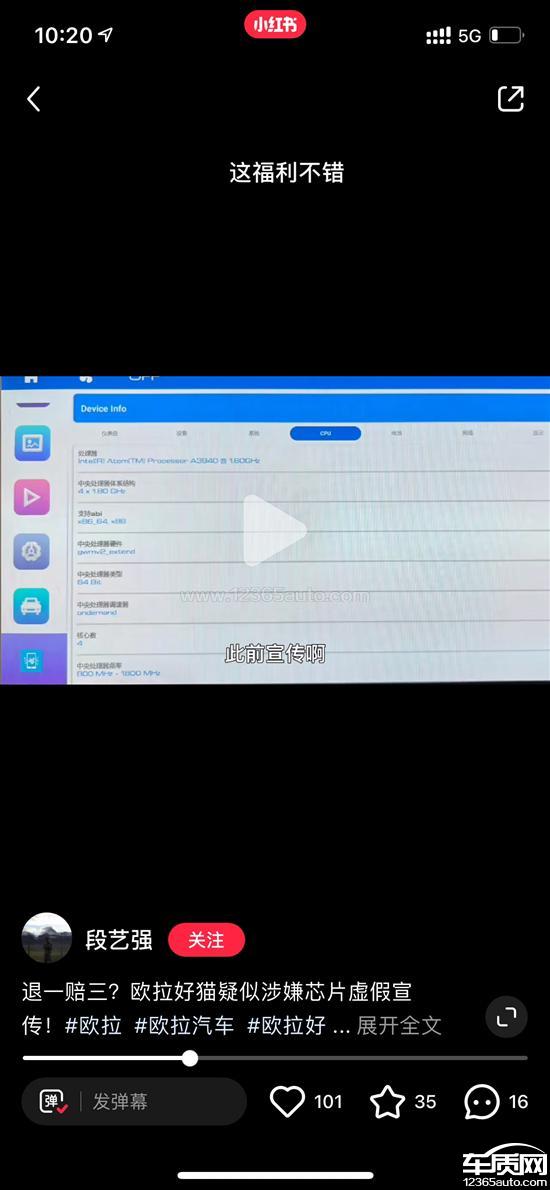 欧拉好猫实车搭载车机芯片与宣传不符2021-11-18车型:2021款 400km 标准续航 雅典娜版 磷酸铁锂