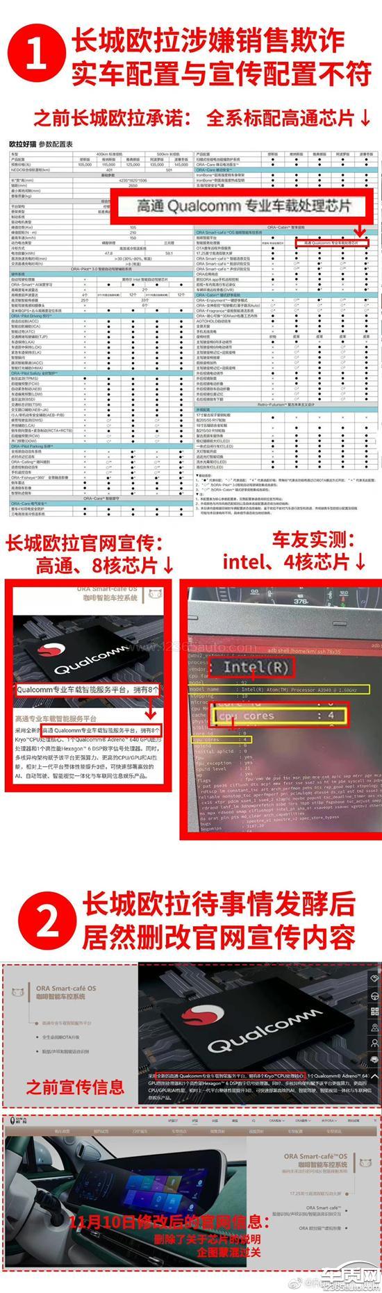 欧拉好猫车机芯片宣传欺诈 芯片偷梁换柱2021-11-21车型:2021款 500km 长续航 波塞冬版 三元锂
