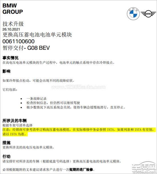 今年8月9日在广西南宁买了三个月的准新车,收到“传票”!要“召回”拆解动力电池组进行“技术升级”(维修)。宝马iX3自推出以来就有传动系统损坏的风险,事情起因很大可能是动力电池存在冷焊接点。宝马以“技术升级”为名企图掩盖电池质量缺陷的问题!11月16日,宝马通过mybmwapp上对该批次车主进行先后两次推送(第一次推送提到“可能存在故障”,第二次推送改为“需要升级”),对电池问题进行美化、掩盖,简直是欲盖弥彰!将“召回”美化成“升级”,可耻!11月22日再次在汽车的屏幕上收到推送相关信息。作为本次事件的车主之一,我的诉求是:1.宝马厂家应正视电池原生缺陷问题,执行正规的召回措施并备案;2.更换新的动力电池组总成。3.动力电池终身质保等。据车质网11月22日的文章,我了解到:电池单元的触点系统中存在的冷焊接点松动风险,可能会出现以下不同故障现象:1、出现一条故障记录;2、检查控制信息,但仍然可以继续驾驶;3、极少数情况下高压系统会关闭,使得车辆会缓慢地滑行,直至停止。对于该问题,目前华晨宝马厂家给出的处理措施,是安排4S店对相关车辆(根据底盘号码选择),更换涉及风险的高电压电池单元模块。从目前投诉车主反馈的情况来看,车辆经4S店检测后,无一例外均存在高电压电池单元模块冷焊接点松动风险,需更换1-5个数量不等的电池单元模块。可见该问题或许要比厂家所说的“技术升级”要严重!