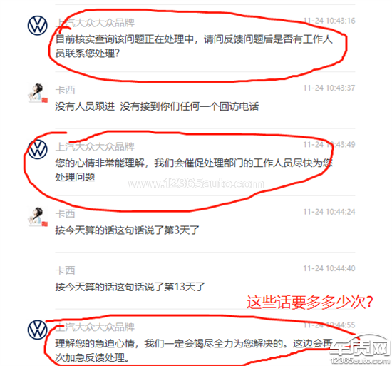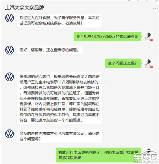 上汽大众厂家回复:关于客户的抱怨问题,我公司已安排对应经销商与客户进行沟通处理中,最终处理情况或处理结果将第一时间反馈贵网。
