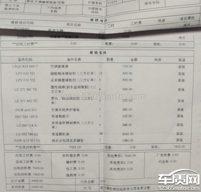 质保期内,漏水三次。此车购买9个月时间,第一次漏水。从2021年8月至2021年12月,近4个月时间。反复打厂家电话,去4s店内沟通。厂家无任何反馈,4s店也不解决问题。维修清单显示:2021年8月8日进厂维修,我2021年8月9日提车。1天时间,维修清单显示费用:14463元,其中其他费用7000元;变速箱油3042元,脚垫1980元,清洗、清洁费用2441元。变速箱到此刻都没有打开过,而且清单显示18桶,但是在维修记录上查询数量是24桶。1980元的脚垫,截止到2021年12月6日,我还没有见到换新。4s店员工,初期同意退还保险公司钱,中期说可以定损500元。后期都不认识。2021年10月,4s店维修站站长和销售总监,同意重新定损,500元也可以,14463元也可以。但最终都不承认。
