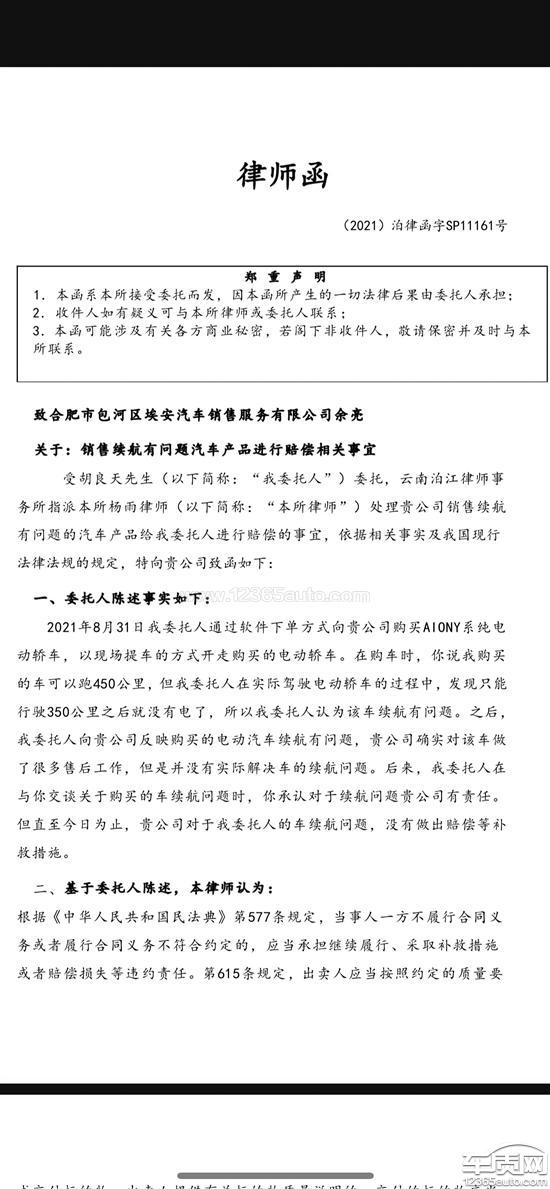 投诉编号:【677180】 投诉时间:2021-12-08 15:28 投诉品牌:埃安 投诉车系:AION Y 投诉车型:2021款 70 悦享科技版