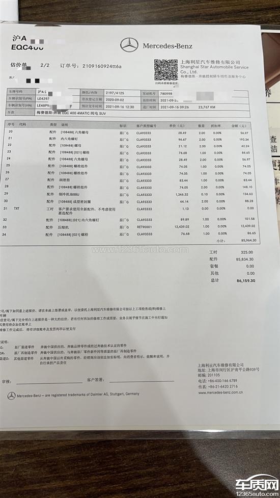 投诉编号:【677241】 投诉时间:2021-12-08 16:44 投诉品牌:北京奔驰 投诉车系:奔驰EQC 投诉车型:2020款 EQC 400 4MATIC