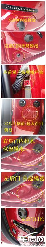 1.全车原版油漆无做漆无事故。2.2018年3月购买使用半年4个轮毂生锈3个(已经更换处理)。3.2020年8月发现四门生锈。3.1.左前门排水位内部起锈泡。3.2左后门排水网内部起锈泡门栓已经腐锈掉铁皮漆,儿童锁生锈打补丁依旧内部起泡生锈。3.3右前门排水位内部起锈泡。3.4右后门排水位内部起锈泡儿童锁生锈打补丁依旧内部起泡生锈,并且附近起大面积锈泡。4.机仓盖左右两边严重腐锈并已经流锈水。5.左右减震器螺丝栓已经严重腐锈,和4s店沟通回复拆左右翼子板生锈抛光补漆只能治标,但是车主要框架电泳工序没做好,后续依旧会生锈,属于原厂质量问题,抛光补漆治标不治本,怀疑电泳问题,后续依旧会生锈,并且4门就算全换,车辆成了维修事故车,才使用2年半,质量堪忧,强烈要求厂家安排妥善处理,否则维权到底。已经过了14个月厂家至今不联系不处理不回复不理会,强烈要求给出明确的态度。