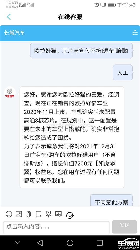 欧拉好猫车机芯片实际配置与宣传不符2021-12-13车型:2021款 400km 标准续航 维纳斯版 三元锂