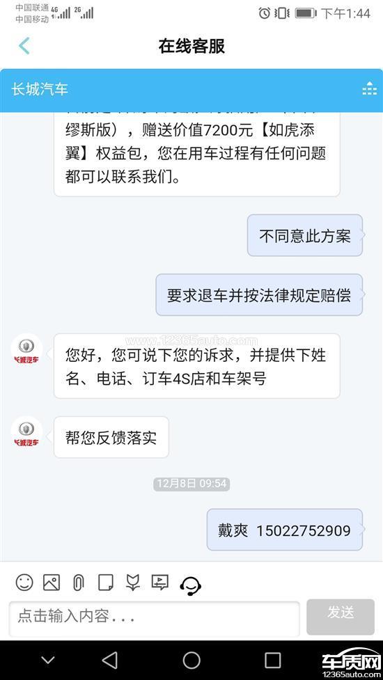 长城汽车厂家回复:您的信息我们已经收到,将尽快安排相关4S店与您联系处理,感谢您的支持与谅解。车辆使用中如需帮助,您可随时致电欧拉品牌客服热线:400-666-5969进行咨询、反馈,将竭诚为您服务。