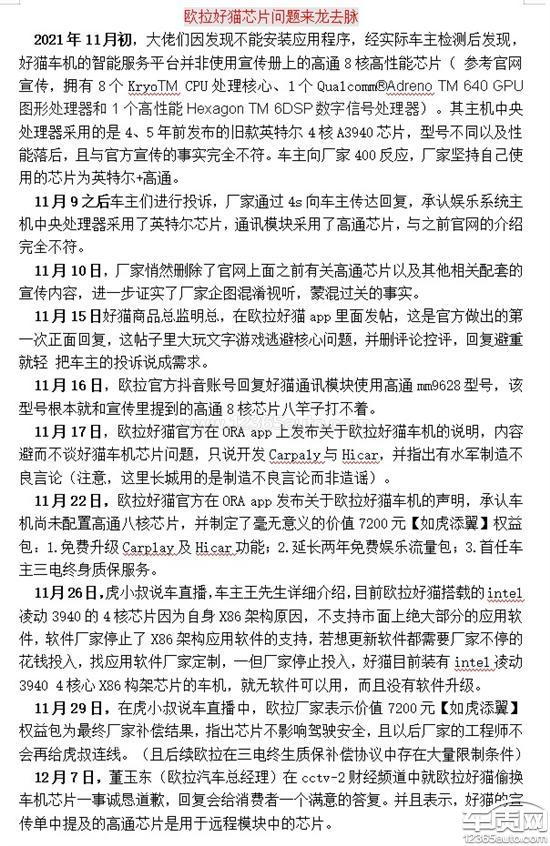 欧拉好猫车机使用芯片宣传不符欺骗消费者2021-12-13车型:2021款 500km 长续航 阿波罗版 三元锂