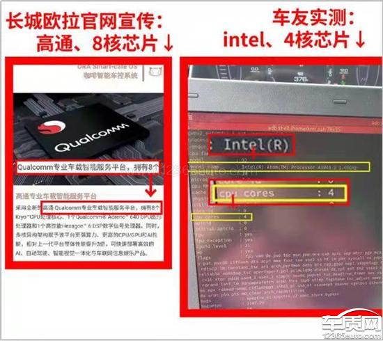 欧拉好猫以搭载高通骁龙8核芯片为主要宣传卖点,实际搭载因特尔4核芯片;宣传搭载蓝牙5.0,实际交付为蓝牙4.2。