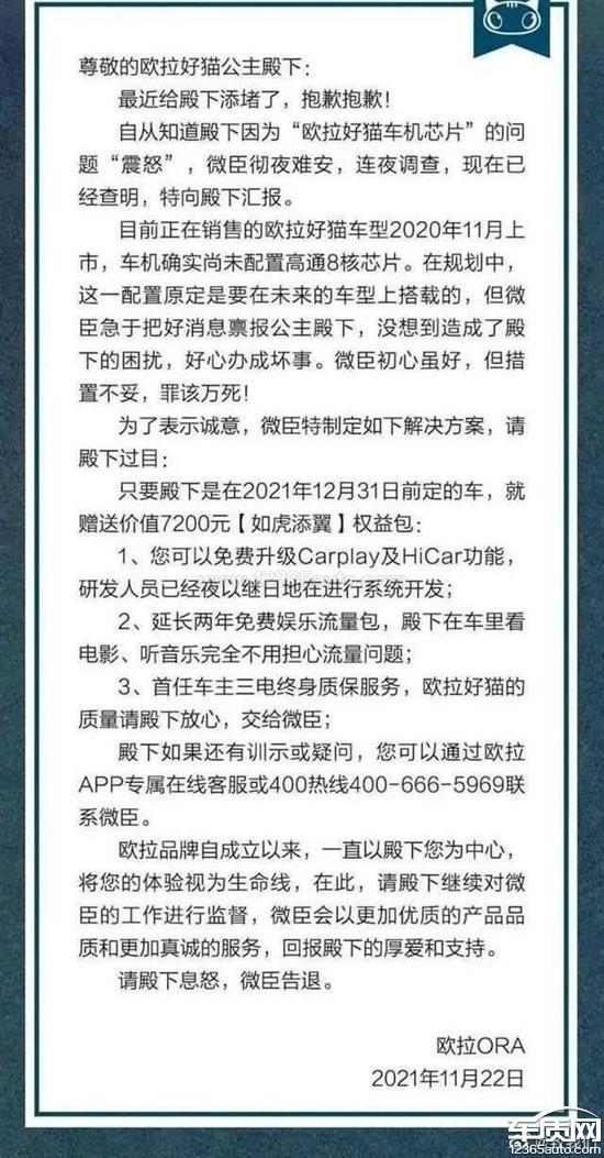 欧拉好猫车机芯片与宣传不符欺骗消费者2021-12-20车型:2021款 400km 标准续航 维纳斯版 三元锂