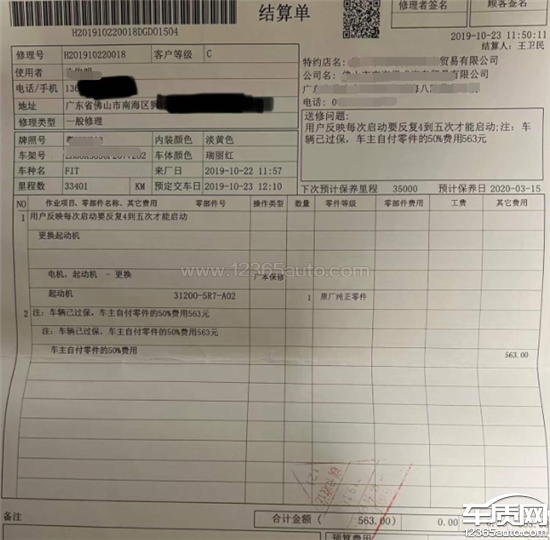 2019年10月的时候自费更换起动机50%费用563元,2021年12月收到官方推送起动机延保至8年,致电给400-830-8999咨询符合延保其中,400告知与4s店沟通,与4s沟通没有了下文。要求退回当时自费更换起动机50%的费用563元。