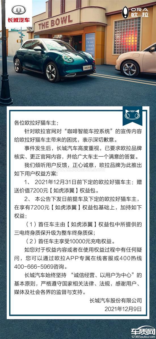 欧拉好猫车机芯片与宣传不符要求更换2021-12-28车型:2021款 400km 标准续航 缪斯版 三元锂