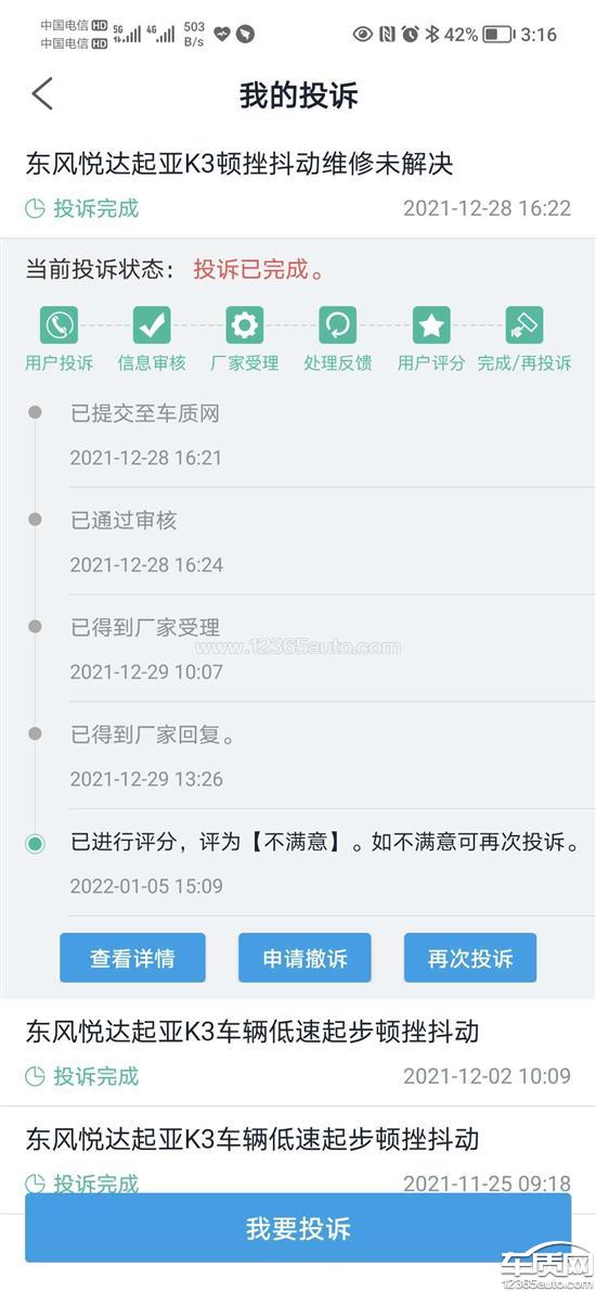 东风悦达起亚K3顿挫抖动维修未解决2021-12-28车型:2019款 1.4T DCT GT-line智享运动版