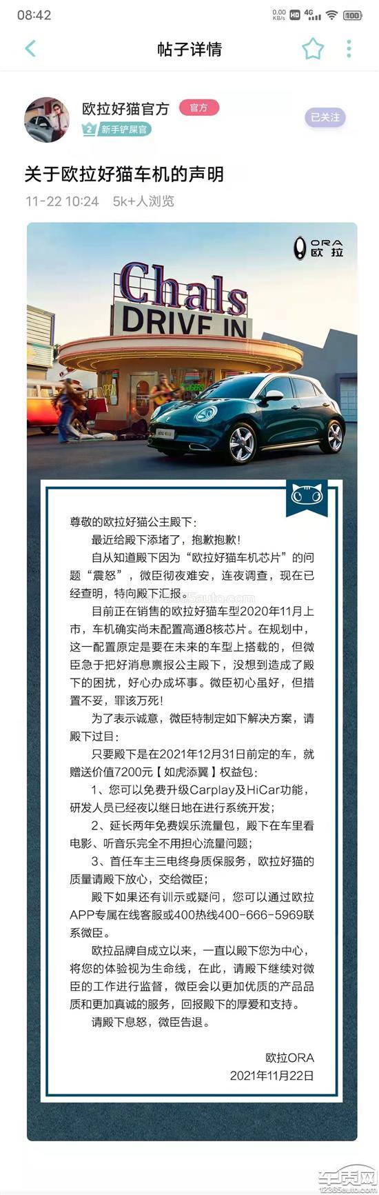 欧拉好猫车机芯片虚假宣传欺诈消费者2022-01-05车型:2021款 400km 标准续航 维纳斯版 三元锂