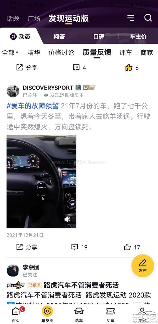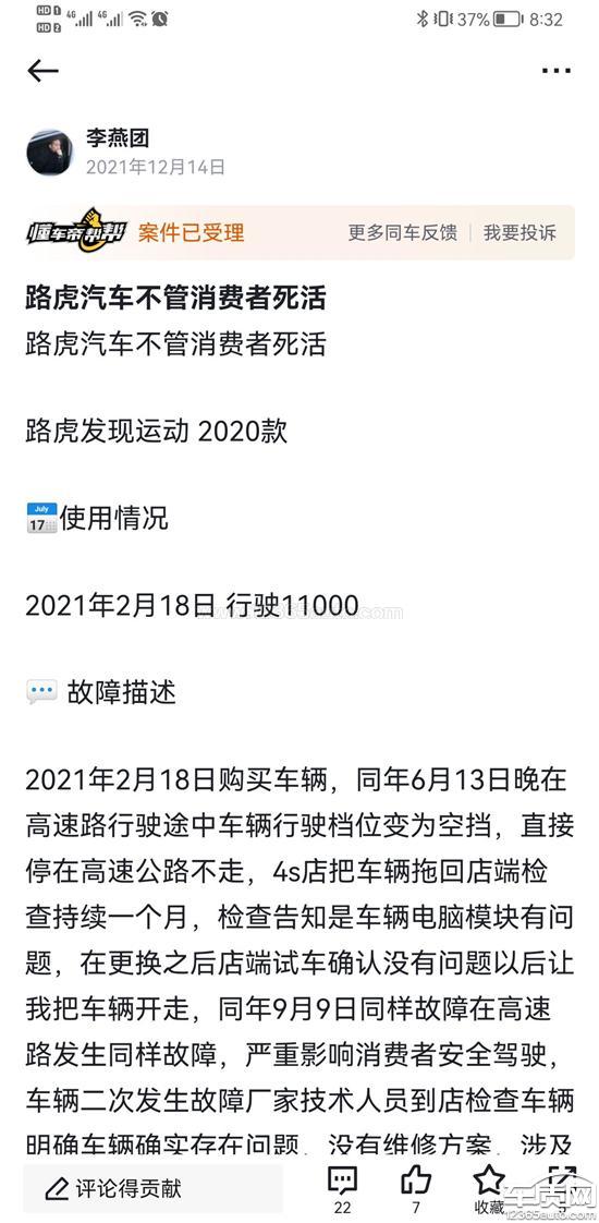 投诉编号:【690703】 投诉时间:2022-01-08 20:37 投诉品牌:奇瑞捷豹路虎 投诉车系:发现运动 投诉车型:2022款 249PS R-Dynamic S 性能版 5座