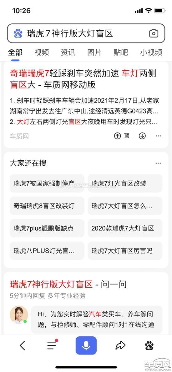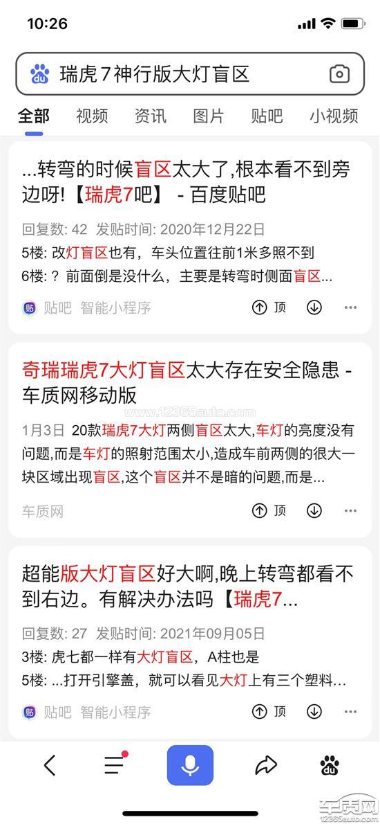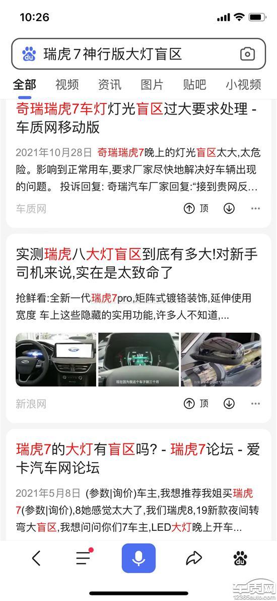 奇瑞瑞虎7大灯盲区太大存在安全隐患2021-12-31车型:2020款 1.6T DCT 智 PRO