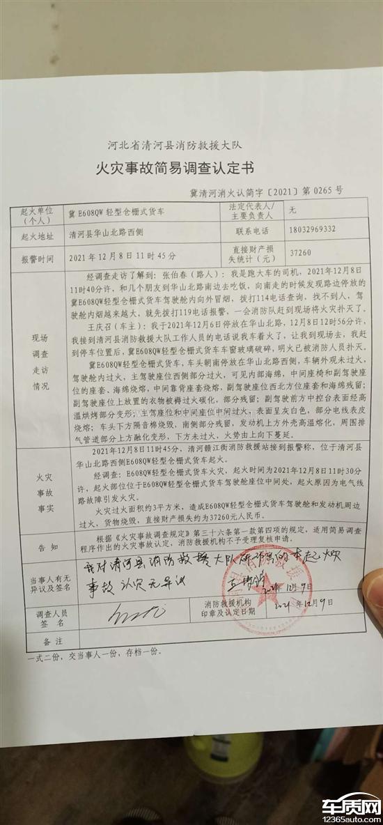买了才6个月,在那放着2天着火了,这要开着出事故我小命也搭车上了。