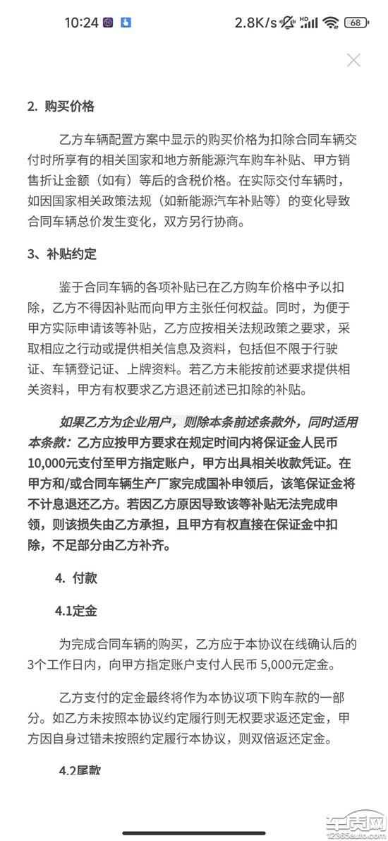 10月5日定车,销售承诺2个月交车。合同写明3个月内交车,截至1月28日仍未有任何进展。要求按合同双倍赔偿定金。