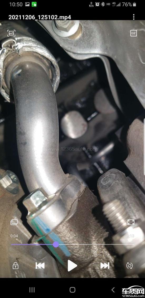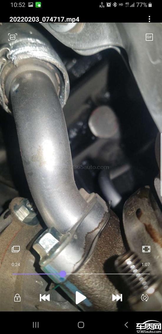 第一张图为21年12月拍摄,未出现漏油,第二张图为22年02月拍摄,螺纹连接处已出现大量渗油痕迹。涡轮出现渗油漏油问题,涡轮温度高渗油漏油后易导致起火等潜在危险。且目前车子仅仅行驶13000公里,一直在城市路况行驶,没有越野或暴力驾驶,车友群内大量2.0L车型发现此问题。我希望厂家免费解决好车辆的问题。