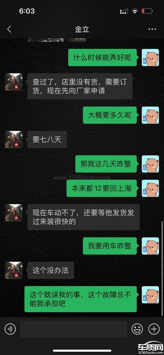 4s店说要七八天,找店里解决我七八天的车辆使用问题,不回复,找厂家,厂家说要五天以后才能给备用车,现在导致我无法工作,买了一年的车出现问题,除了车辆配件厂家承担,其他损失厂家不负责。电话带过去要解决方案,话都不说一句。