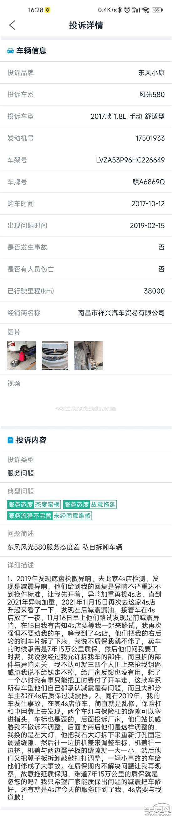 投诉编号:【702980】 投诉时间:2022-02-13 23:09 投诉品牌:东风小康 投诉车系:风光580 投诉车型:2017款 1.8L 手动 舒适型