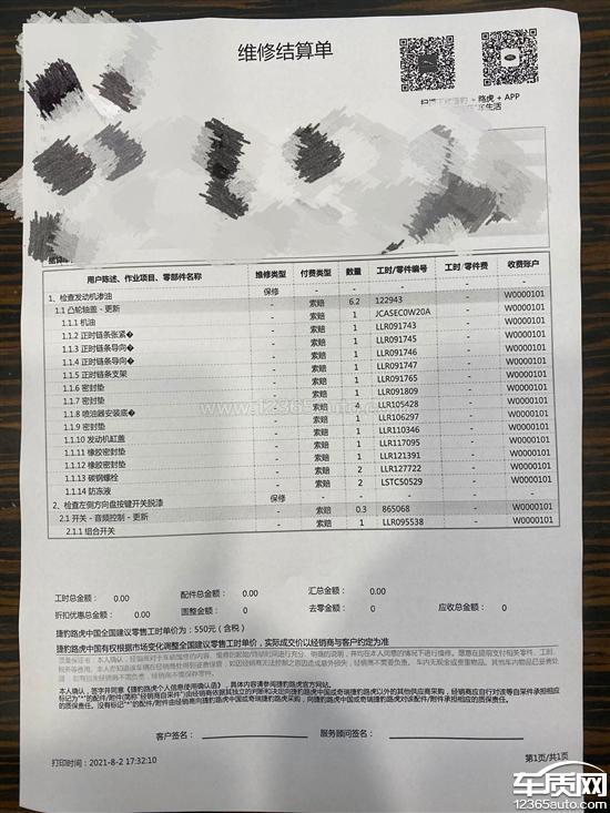 奇瑞捷豹路虎厂家回复:已安排人员处理