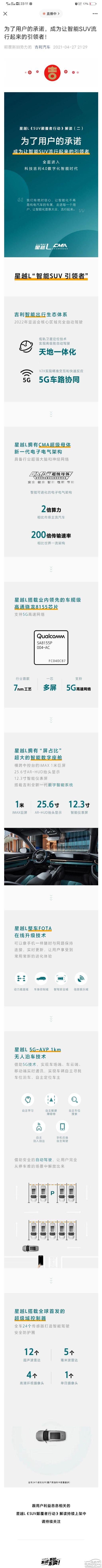 吉利星越L无人泊车和5G网络与厂家宣传不符2022-03-15车型:2021款 2.0TD 高功 自动 四驱 旗舰型
