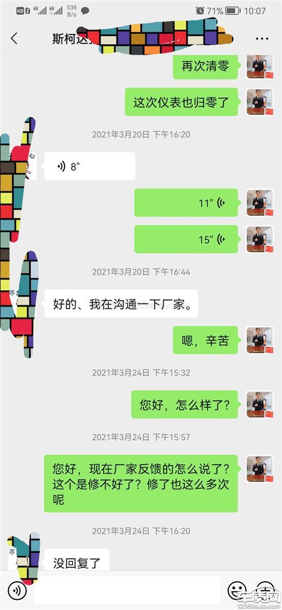 从2020年刚提车没多久就出现清零,之后多次清零,联系4s店,上传厂家,升级改版,拆导航线,又出现再次联系4s店,上传厂家,更换仪表盘,过时间又出现,还是没解决,再次联系4s店,上传厂家,厂家不回复,之后多次联系厂家,400热线,一推二五六,现在电话直接不接,就这样被无视了,马上过保,从刚提车出现问题,到现在2年多,一直和4s店打交道,4s店都混的可面熟了,把他们售后都熬走了几波,4s店一听明锐都知道我的车,想请问下斯柯达就是这样对待广大用户吗?这样的品牌如此寒客户的心,谁还敢再相信;Ps:一年半的时候车子天窗框架开裂,车内异响,变速箱异响,油耗保持10个左右,也许厂家和开车习惯有关,反正品牌宣传是省油,我这辆车是没看到省油,更别说省心了。