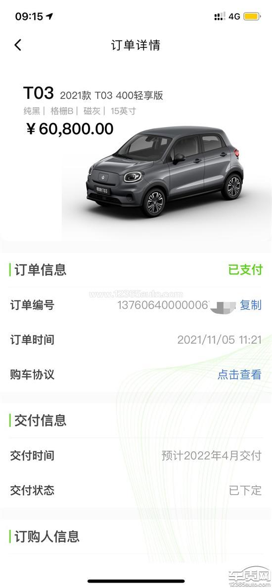 投诉编号:【726851】 投诉时间:2022-04-09 09:29 投诉品牌:零跑汽车 投诉车系:零跑T03 投诉车型:2021款 400轻享版 磷酸铁锂