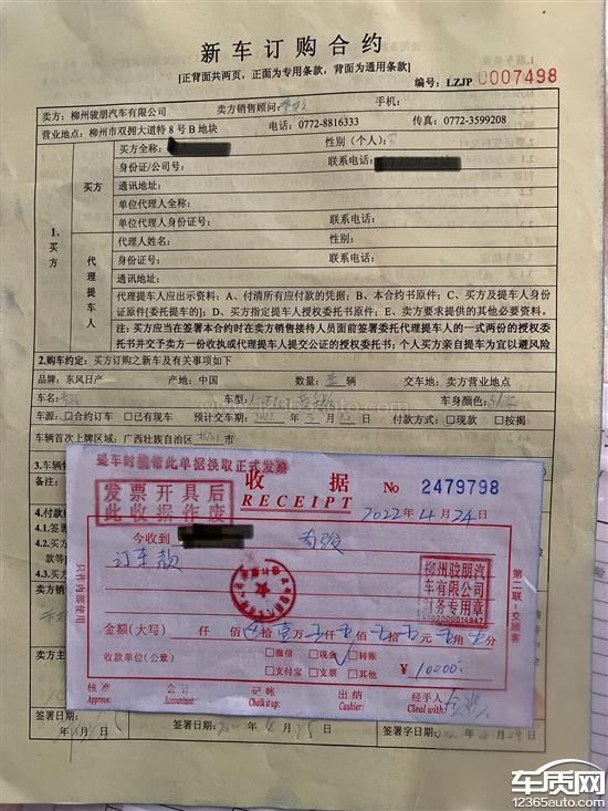 本人于4月24日在东风日产柳州4S店定购一台奇骏2驱豪华版,并与4S店签订购车合约,付定金1万,约定5月10日前交车。4月28日收到4S店信息,说4月26日收到厂家信息,库存车无法提供双保及发动机终身质保,且无法调车,要我退定。个人不能接受日产及4S店单方面毁约,要求厂家及经销商给一个合理的解决方案。