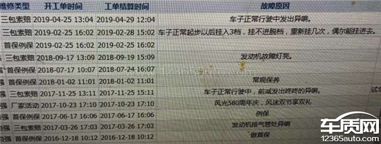 2017年3月26日发动机进气管漏气,2017年11月25日前减震异响更换前减震。2018年9月19日发动机故障灯维修,2019年2月28日变速箱损坏,1挡难挂三挡脱挡。2019年4月29日发动机正时链条损坏,2019年6月变速箱高速行驶中6挡脱挡。2022年4月15日变速箱三挡打齿,2022年5月3日左前窗玻璃升降器损坏。其他:电瓶2018年10月左右更换,多功能方向盘按键2018年后全部失灵,维修三次无果后,放弃维修。变速箱在张家港4s店,同一问题维修多次!