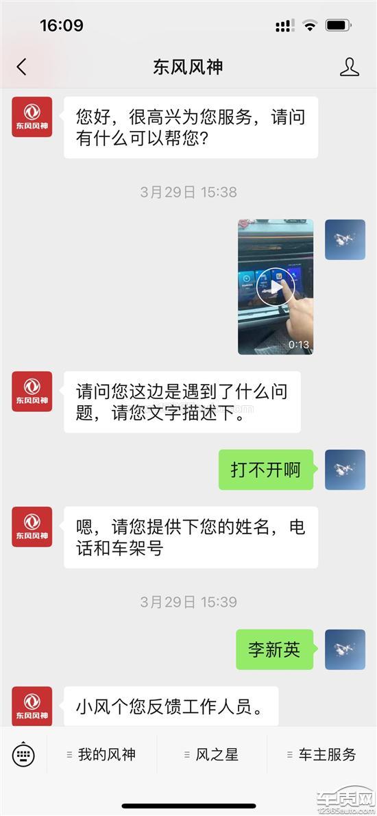 东风乘用车厂家回复:客户反馈的问题厂家已知晓并高度重视,已安排相关4S店和客户进行对接,正在积极的沟通处理中,厂家也将持续关注后续处理结果。感谢客户的支持与谅解。东风风神服务热线:400-880-6600