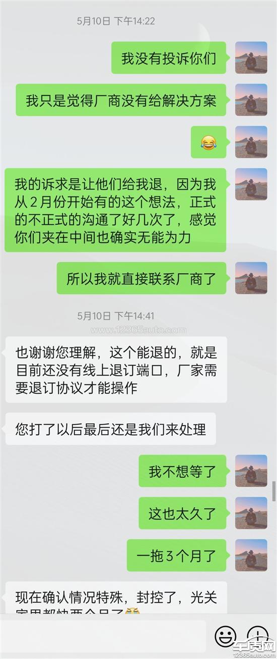 零跑汽车厂家回复:您好!感谢您反馈的信息。车辆交付相关的问题,您可以致电零跑客户服务中心400-008-1234,周一至周日:9:00-20:00。零跑将积极监督/协助授权经销商合理、合法地解决您反馈的问题。提供高品质的智能电动车产品与服务是零跑的长期追求,我们也在不断提升服务,为用户的出行和生活创造最大价值。祝您生活愉快!