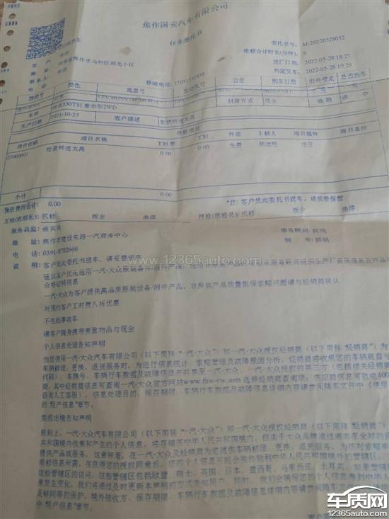投诉编号:【748921】 投诉时间:2022-05-30 17:52 投诉品牌:一汽-大众 投诉车系:探岳 投诉车型:2021款 330TSI 两驱 30周年纪念版