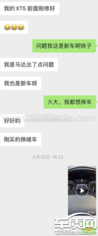 您好,本人4月10号提的的xt4,反映问题:1.售卖瑕疵车(提车时车内车外全是土,并且车漆有损伤,要求换车,却无车可换。担心有故障要求试车,被拒,要求付款购买后才可以试车,并许诺车是好车,不会有问题,有问题找他们)。2.结果付款购买开回家后便开始频繁陆续出现故障(自动大灯无端报障,每次重启后才能解决,店家检测却告知故障码是乱码不影响使用,外后视镜故障,电动按摩座椅故障)当时要求换车被拒!3.随后又出现转向故障,刹车故障,多次去检修,经电脑检测均被告知故障码清除就好,让多观察观察。没几天有同样出现故障,强烈担心的情况下,店家以升级系统解决,并让继续观察,并说不会影响安全,但后续又会出现故障码!4. 5月26日行驶途中,出现刹车和转向故障造成追尾,联系店家,经检测出现转向故障和电子制动故障码。可厂家却又以该故障不会直接影响驾驶为由拒绝处理!5.店家欺骗,诅咒消费者,不兑现承诺,并诅咒消费者事越多越维权越容易出事故!有相关记录和录音!