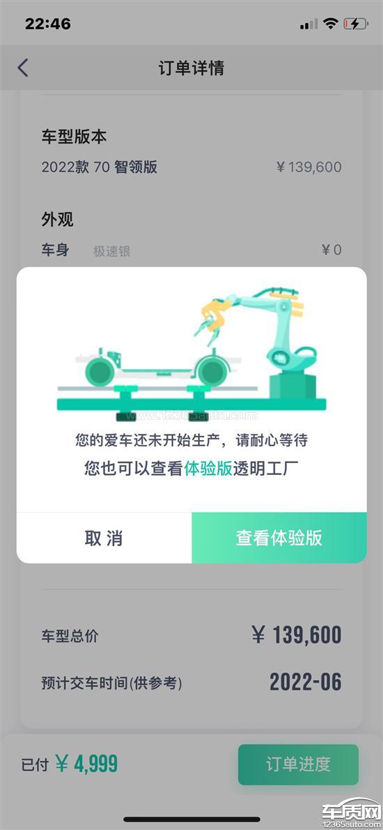 广汽埃安AION Y超过预计提车日期提不到车2022-06-03车型:2022款 70 智领版 磷酸铁锂