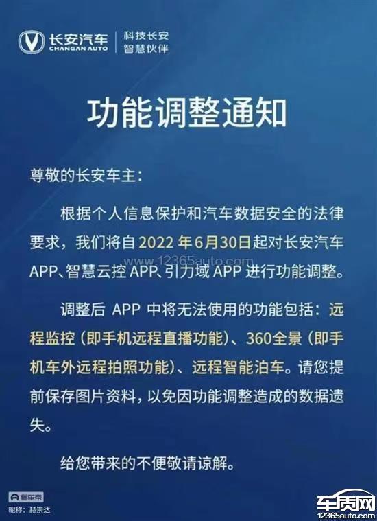 首先,我们购车之前是看到厂家有这样的功能介绍才选配的,在预售期就购买了,新车才用不到几个月,你现在说关闭就关闭?完全没有考虑我们车主的权益?不管是国家的规定也好是什么也好,你们长安厂家需要去协调,而不是一刀切就取消,我们花钱购买的配置,你一个国家规定就取消了?是不是我可以认为你们长安存在销售欺诈行为?其次,我购买时有相应的合同,花的这些配置的钱,你现在取消其中的配置,是不是我可以认为我花的钱白花了?老百姓的钱是大风刮来的?我们这么一心支持国产,国产厂家就是这么服务老百姓的?最后,我的诉求给我们一个合理可行的方案,可以让工程师想一些方法保护隐私,继续保留这个功能,或者起码已购车用车的车主继续使用,或者直接相应的功能给我们做价格赔偿总之这个事情不解决我会一直投诉,你们长安不能让这些支持你们的车主寒心!