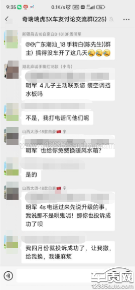 奇瑞汽车厂家回复:“接到贵网反馈的客户信息后,我司非常重视:据我司江门中博瑞恒4S店反馈:已及时联系客户邀约进站处理。具体车辆问题,会积极排查处理。我司会继续做好对该车的跟踪服务,为客户提供周到的售后服务和保障。同时也非常感谢客户对奇瑞汽车的关注和支持,衷心祝您生活愉快,工作顺利!“