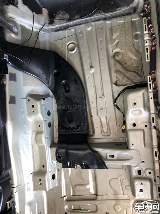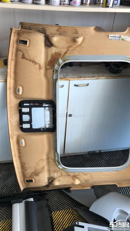 最近偶然发现脚垫下面渗水,检查后发现是天窗漏水,送修后,证实天窗两侧骨架开裂,雨水直接流入车内。