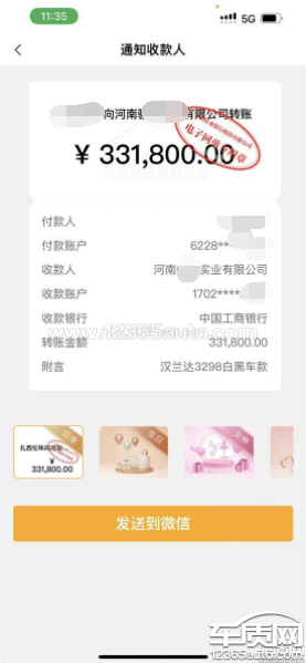 当时本人用全款打到他们公帐上车款,到目前为止他们没给该车辆的合格证,发票等手续,到目前无法上户。