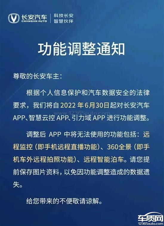 本次投诉和4S店无关,和厂家有关!APP内发一份通知就要在2022年6月30日取消手机APP远程360全景功能。这是什么行为。虽然是响应国家的号召和配合国家的法:律法规,可以理解。但是!但是!但是!这个功能貌似也是属于车主购买车辆时所带有的吧!也属于车主间接性花了钱的吧?现在一份通知说取消就取消,有没有考虑到作为车主的我们的切身利益!有没有考虑到取消功能所带来的影响。有没有考虑到取消功能后针对车主作出的补偿方案!作为车主,作为消费者,作为国人,可以理解厂商的苦衷,可以理解法律法规的限制,也不忘支持国产崛起的初心!但是,作为厂家,完全没有理解消费者,完全没有在意消费者,完全没有把广大消费者放在眼里。