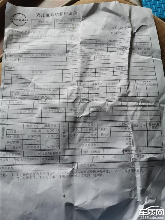 17年3月底购置了一台尼桑逍客,开了49000多公里,变速器出现故障。