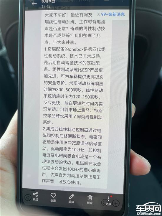 虎8pro1.6风暴5座绿色7月1号提的,提的当天就发现蜂鸣声,当场叫4s店经理上车体验,答复蜂鸣的具体原因也不清楚,刚好五点售后也下班了,说先开几天看一下声音会不会消失,没消失的话再开回来让售后检测一下什么原因,没办法,怕开了几天声音不消失4s店不认这个异常,找4s店经理写了一份声明。昨天去售后检测,答复解决不了,线控刹车就是有这个声音,厂家给的答复如图,意思国家没有关于声音频率的标准,所以我厂家说啥就是啥,你客户买了就得受着呗?笑了,第一辆车就踩雷,厂家知道是设计缺陷就不改进,这就是传说中的国产之光?