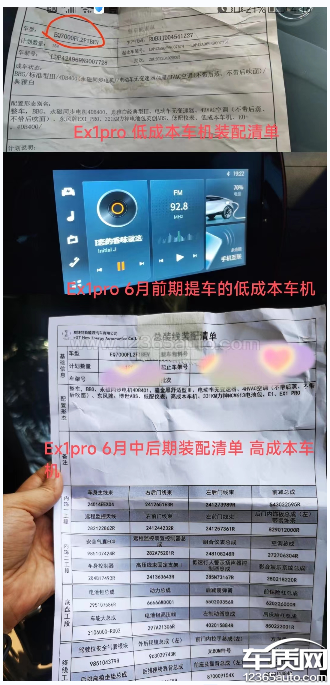 22款东风新能源EX1PRO中配车型,同款配置,同款型号,车机却不一样,一种用高成本车机,一种用低成本车机,与官网宣传配置不符,虚假宣传,欺诈消费者。6月刚提的车是高成本车机,有导航,有ev智联可以查看和控制车辆,带车辆故障短信报警功能,但3-5月份(本人5月份)提的同款车型用的却是低成本车机,没有智联应用和导航功能,与当初订车时的宣传配置货不对板,强烈要求东风厂家给予答复并拿出解决方案!要求更换为高成本车机!并且六月份电池也换成331公里的,和ABS更换为博士牌的了。