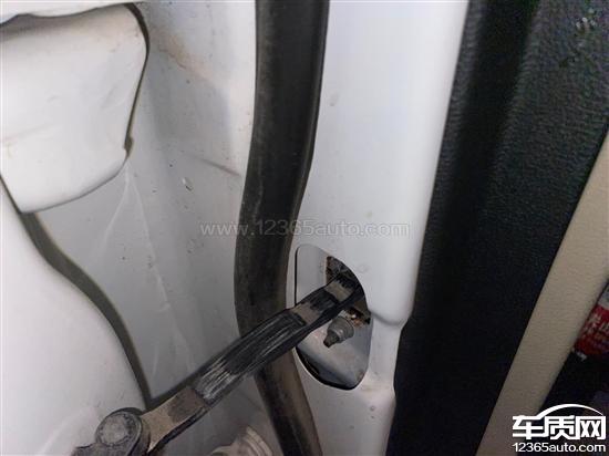 车辆侧裙漆面鼓包生锈,前后门限位器部位生锈。